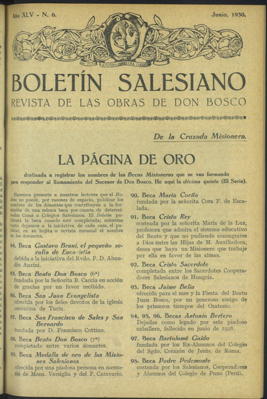 Boletín Salesiano. Junio 1930