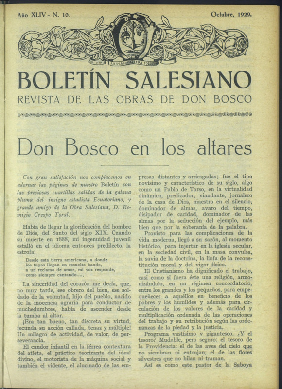 Boletín Salesiano. Octubre 1929