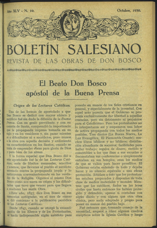 Boletín Salesiano. Octubre 1930