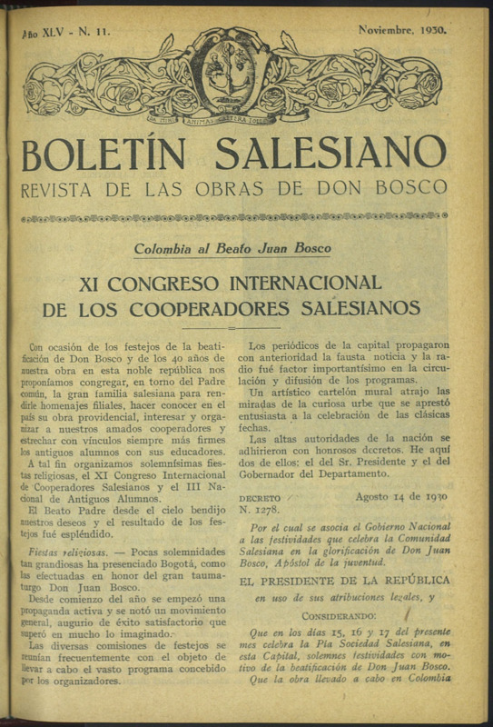 Boletín Salesiano. Noviembre 1930