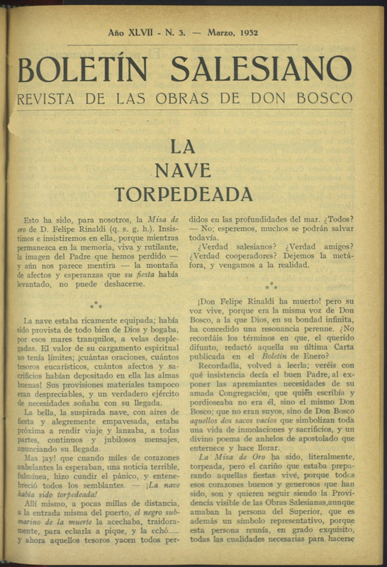 Boletín Salesiano. Marzo 1932