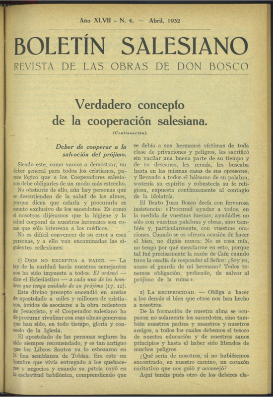 Boletín Salesiano. Abril 1932