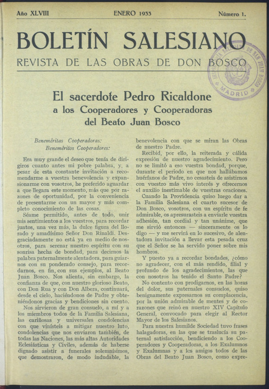 R k cto r M.\y o r d e lo s S aleslak os - Cottolengo 32 - Tarín (109) (Italia).