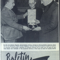 E l Jefe del Estado Español, G eneralísim o Fran co , entrega al Reverendísim o Superior Cene*